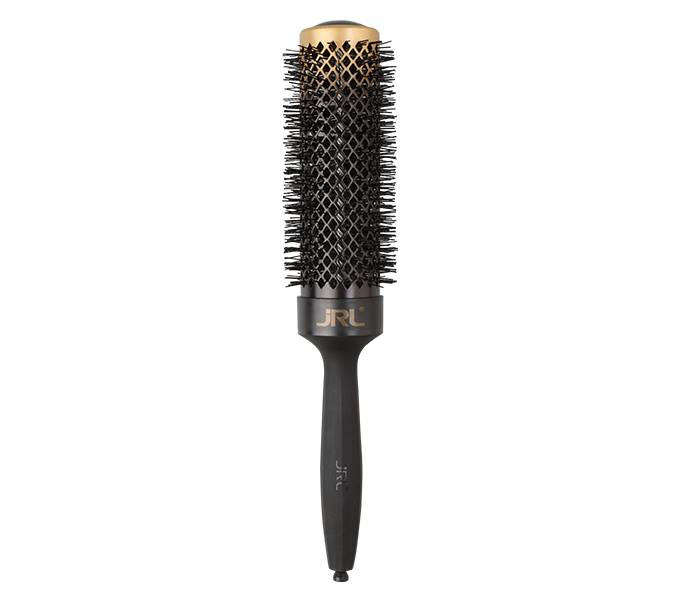 An extended-barrel brush for higher volume, combining color-changing ceramic and wavy bristles for fast drying and enhanced lift.