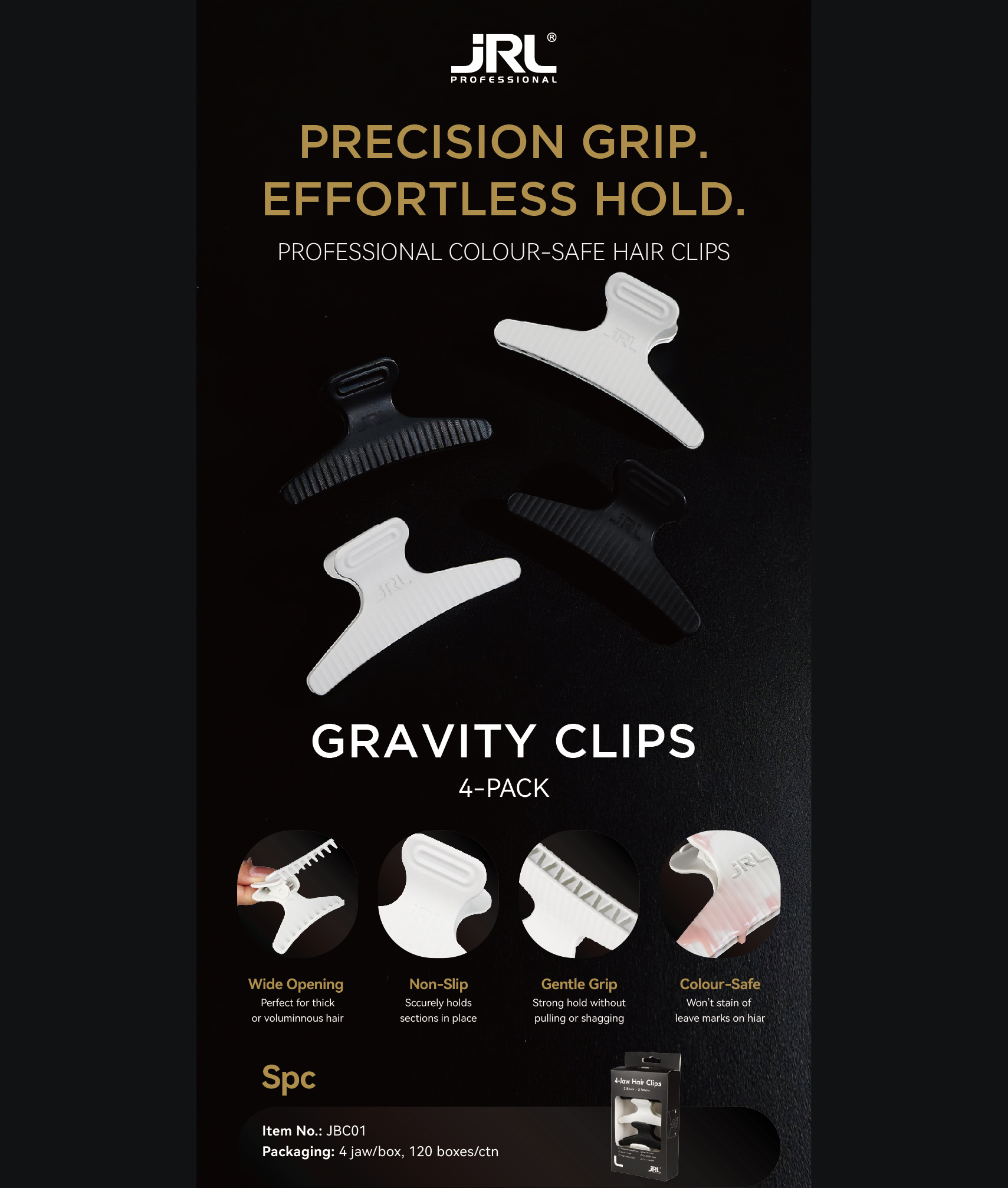 Sold in a convenient 4-pack, each clip is designed for effortless handling and reliable performance in busy salon environments.