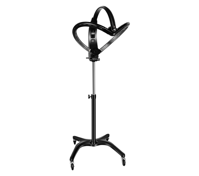 Both the machine height and swing arm angles are adjustable to accommodate different client setups and treatment needs.