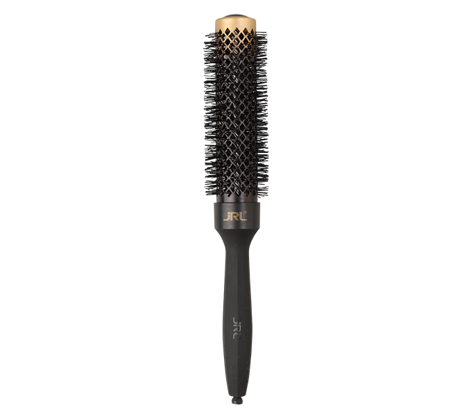 An extended-barrel brush for higher volume, combining color-changing ceramic and wavy bristles for fast drying and enhanced lift.